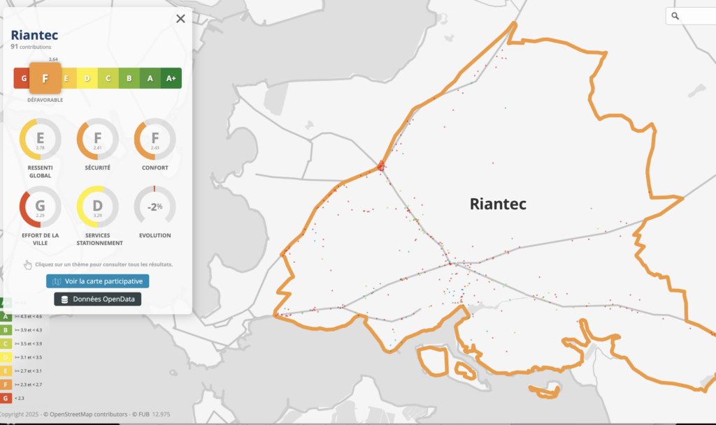 Aujourd’hui, Riantec stagne en bas de classement du Baromètre Villes Cyclables, les efforts de la commune étant jugés insuffisants. Ce constat s’étend malheureusement aux piétons. Dans certains projets récents, les mobilités douces semblent avoir été purement et simplement ignorées.
